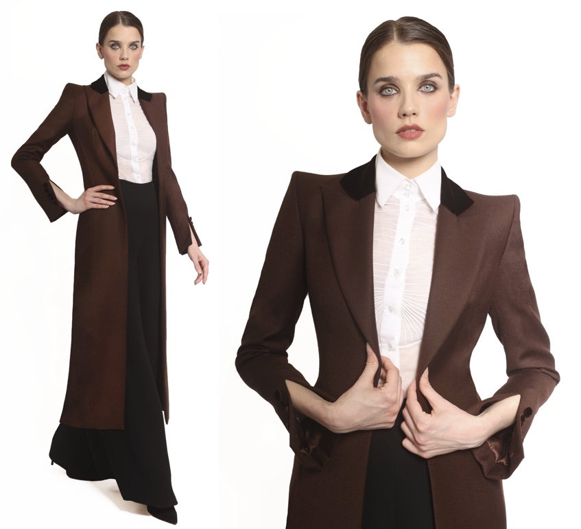 It features elements similar to those seen in the Catherine Walker Yves style: a single-breasted design with notch lapels, a back vent, and raised shoulders. Obviously, the Princess’s version does not have the slit cuffs or other features seen in the Yves.