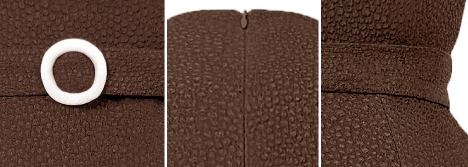 The long sleeve version is available in very limited sizes at SOSUSU, a New Orleans boutique. The sleeveless style is offered at Edeline Lee ($2020). As shown in these close-ups, the fabric has a pebbled texture.